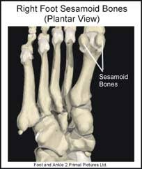 Sesamoid injuries can involve the bones, tendons, and surrounding tissue in the joint. They are often associated with activities requiring increased pressure on the ball of the foot like running, basketball, football, golf, tennis and ballet. Also people with high arches are at risk for developing sesamoid problems.